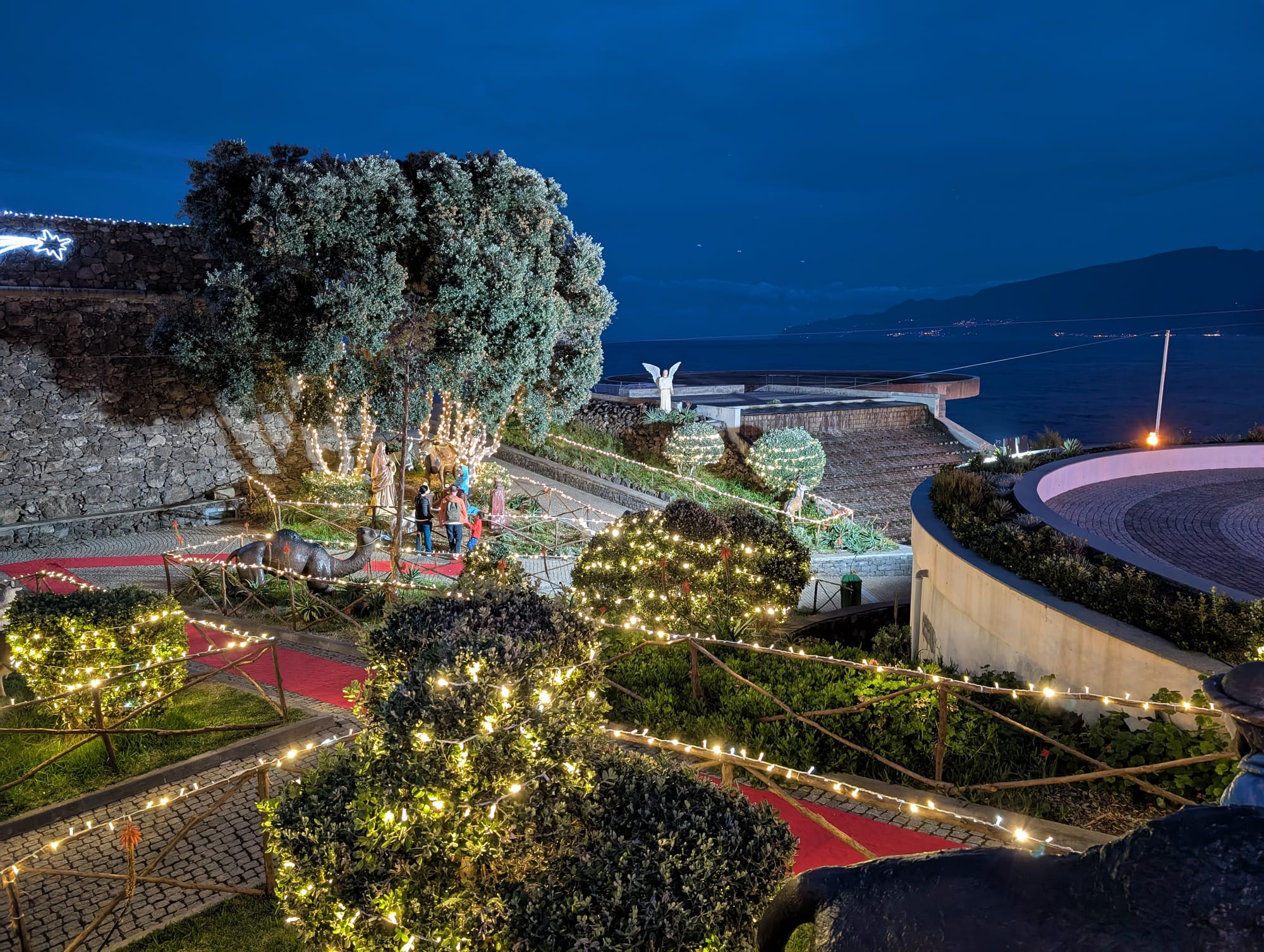 Im dunklen kam die Weihnachtsbeleuchtung und der helle Mondschein dann richtig zur Geltung und ich unternahm noch einen langen Nachtspaziergang und lauschte den Wellen an den Klippen.