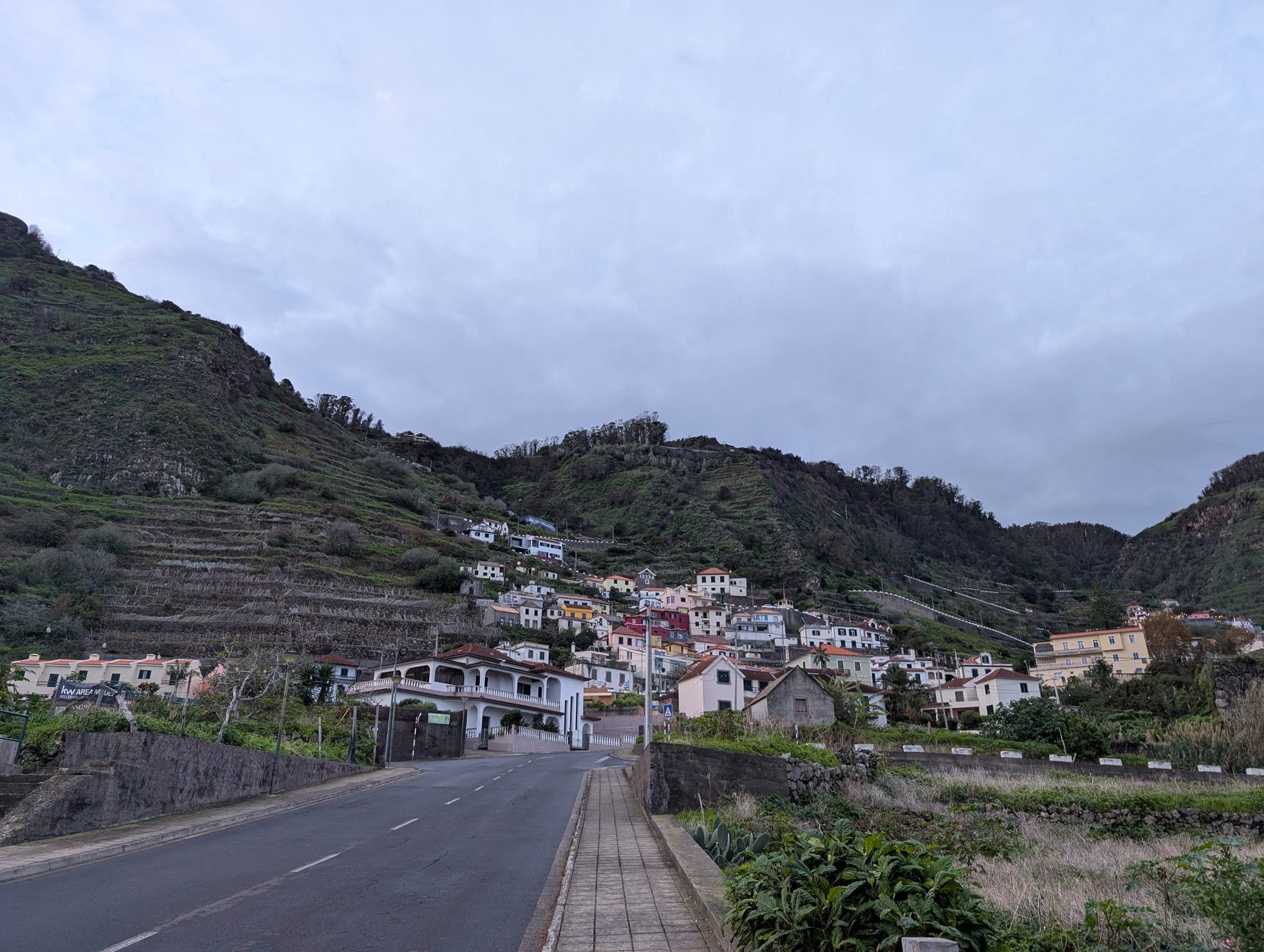 Nach etwa 10 Kilometern kam ich schließlich in Porto da Cruz an. Die ersten Straßen waren eher heruntergekommen und abgelegen. Hier waren kaum Menschen unterwegs. Immer wieder bellten mich Hunde an.