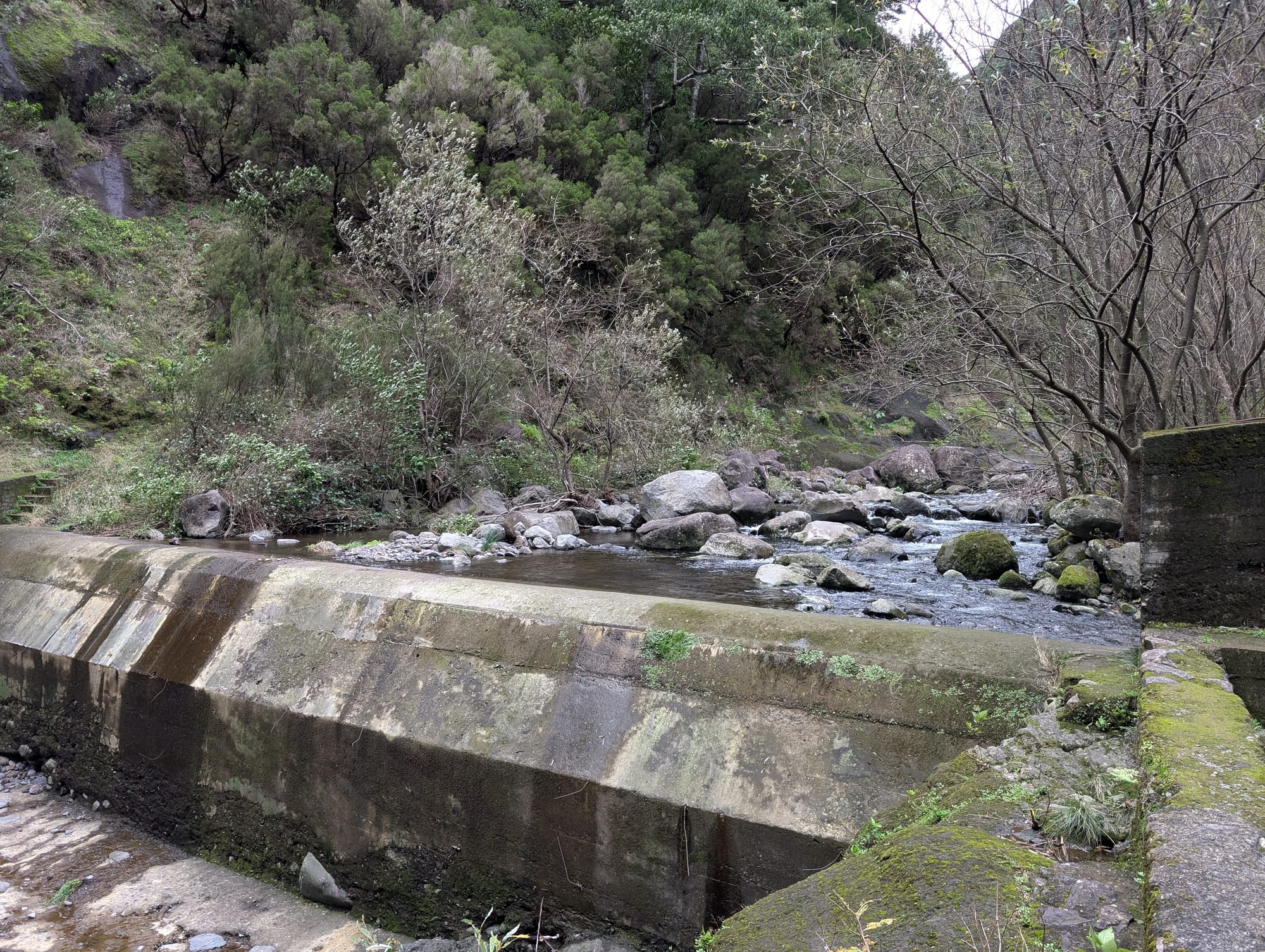 Nach etwa 2km passierte ich einen Beton-Staudamm im kleinen Fluss, welcher durch das Tal unterhalb der Levada fließt.