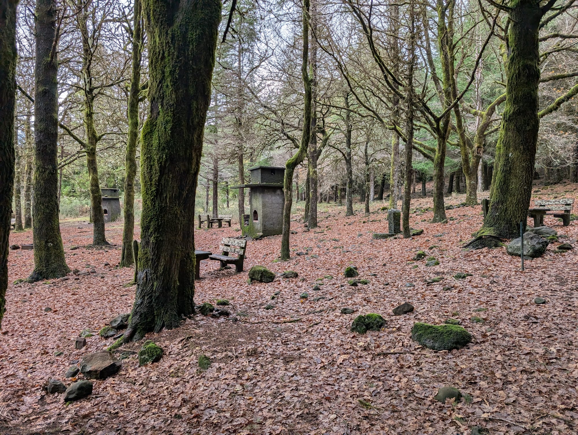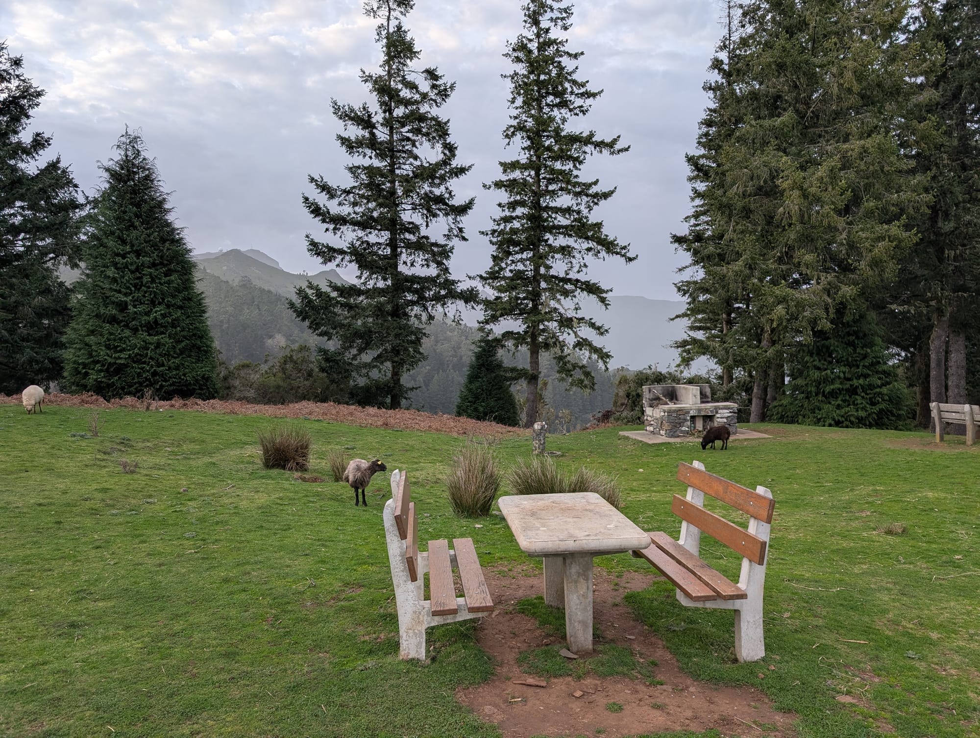 Mein Ziel für den Tag war der Wildcampingplatz bei Chão das Feiteiras. Dort befindet sich ein abgelegener, weitläufiger Park mit Sitzbänken und verschiedenen Wiesen.