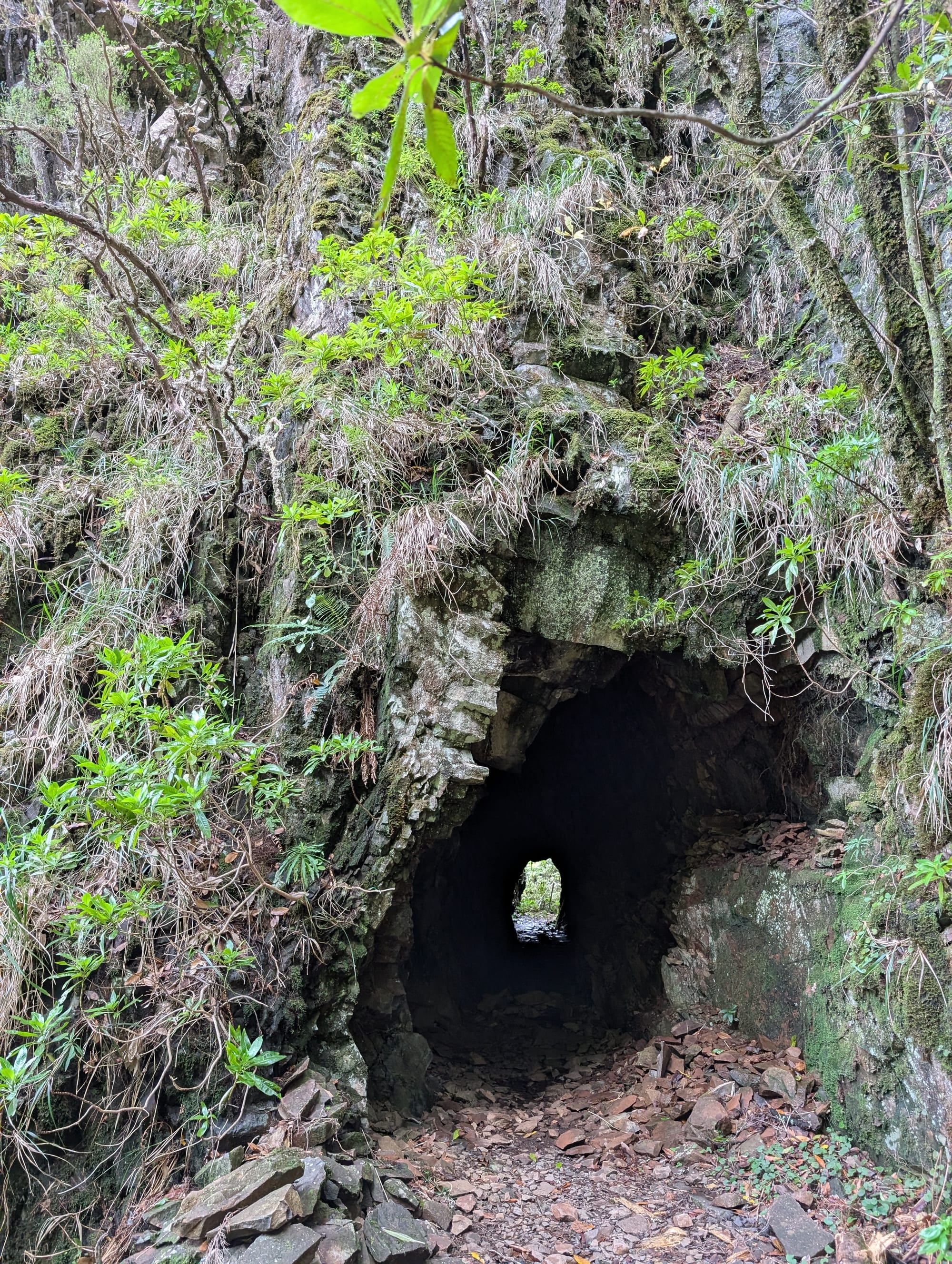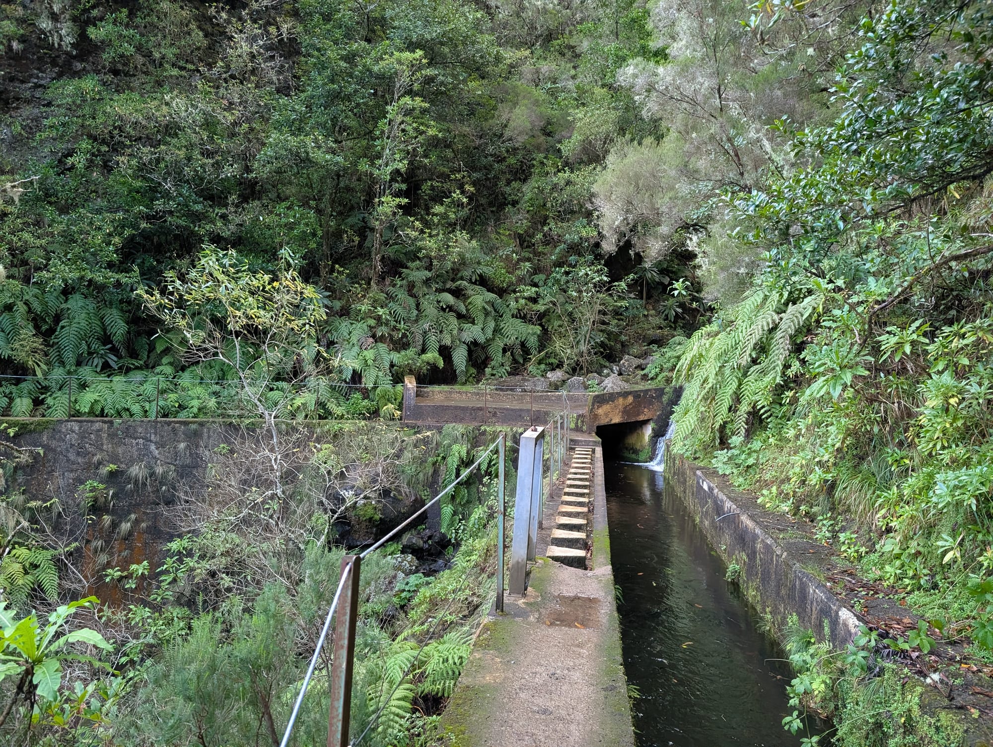 Im Laufe der nächsten Kilometer folgten mehrere weitere Tunnel. Mehrfach stand der Weg neben der Levada im Tunnel auch unter Wasser, sodass ich auf dem kleinen Mittelsteg balancierte.