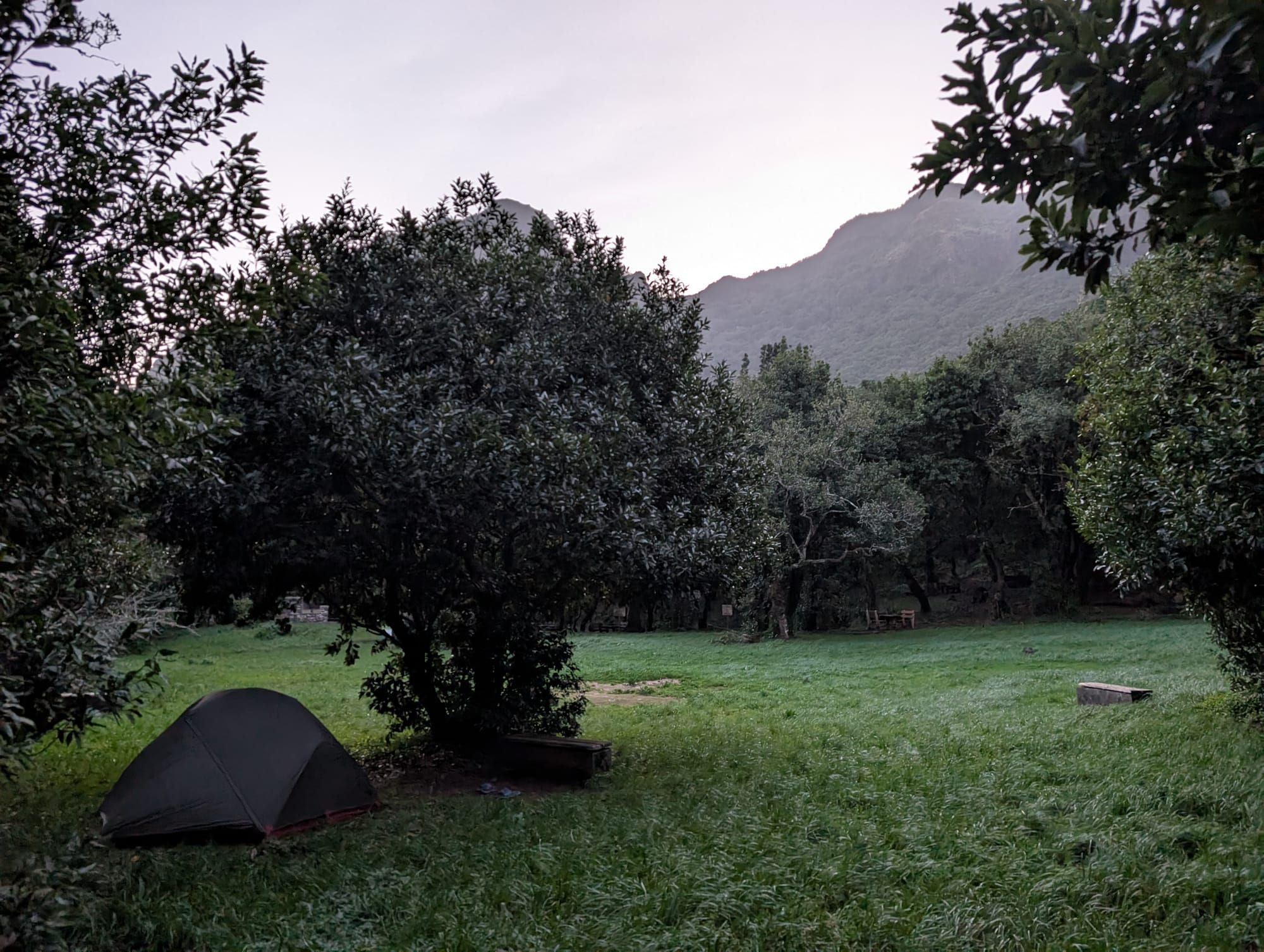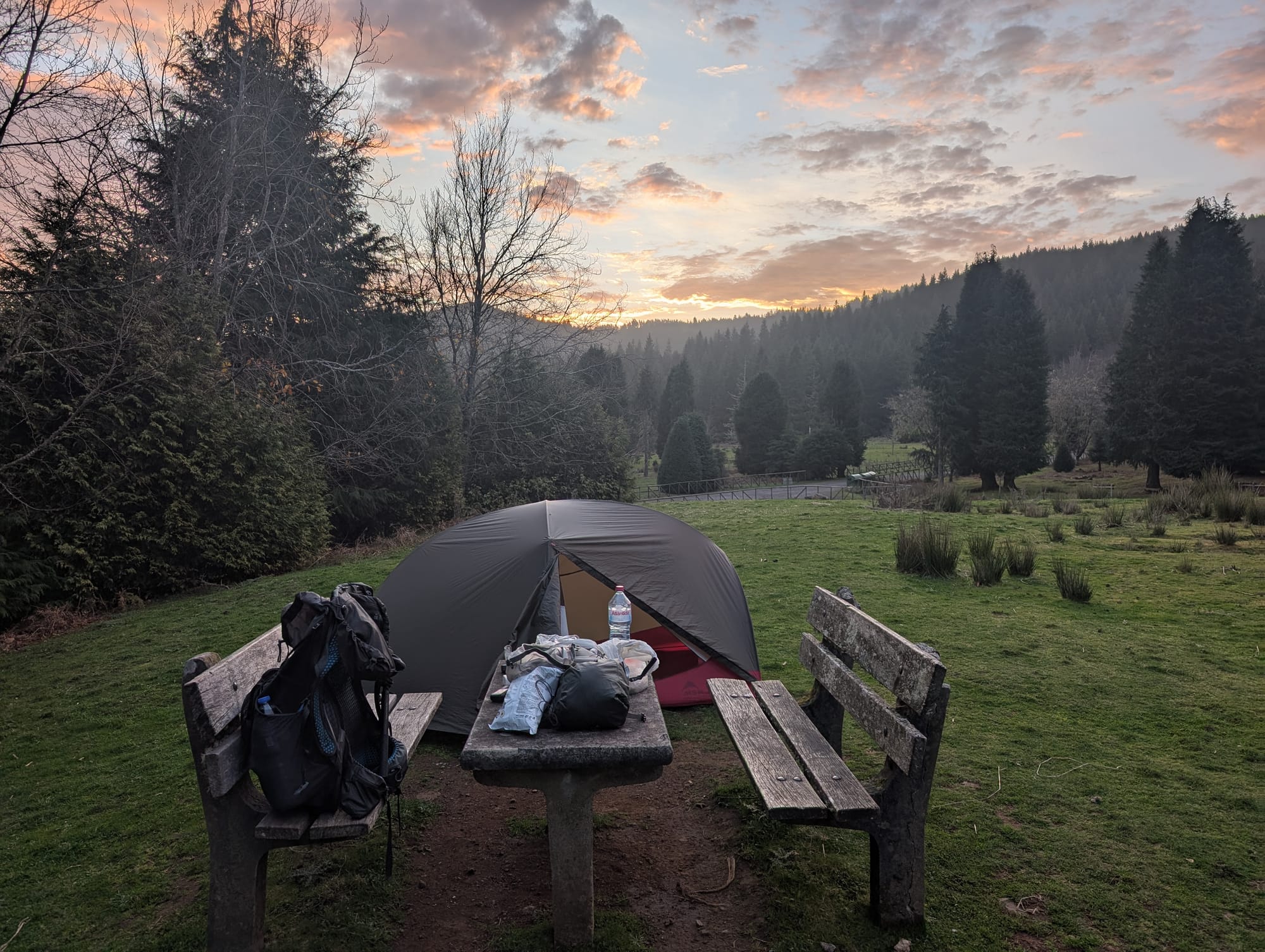 Mein Zelt baute ich direkt neben einem Picknicktisch mit etwas Ausblick ins Tal auf.