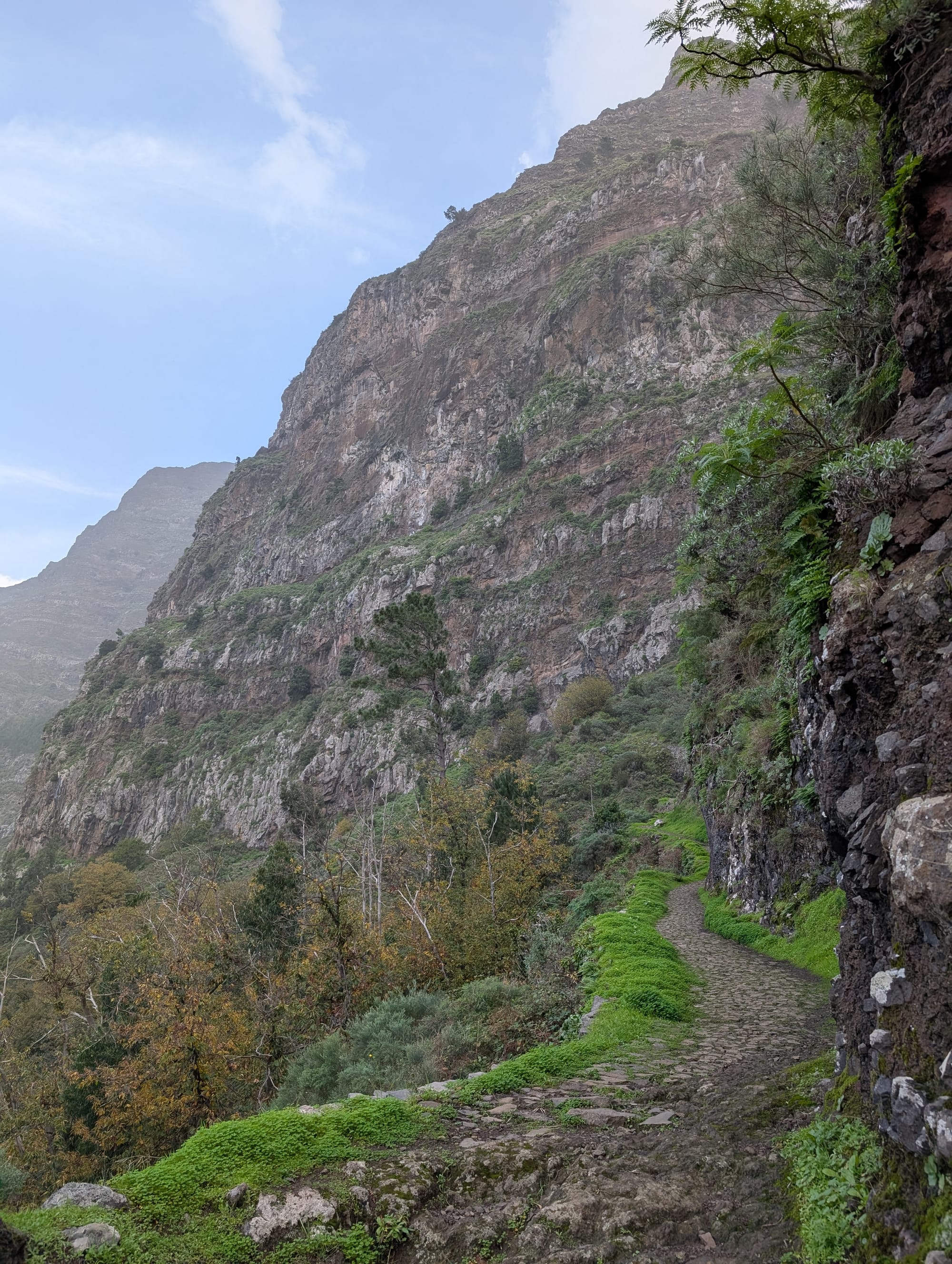 Nach etwa 8 Kilometern verließ ich den Pfad an der Levada und es ging wieder steiler bergab. Der Weg führte durch einen schönen Loorbeerwald. Zwischenzeitlich wurde es so steil, dass ich einmal komplett ausgerutscht und hingefallen bin.