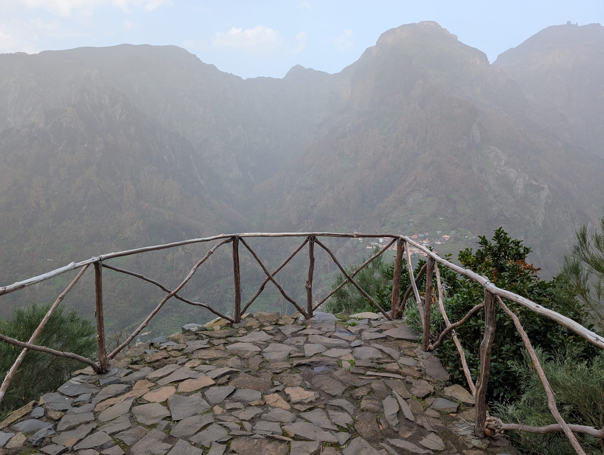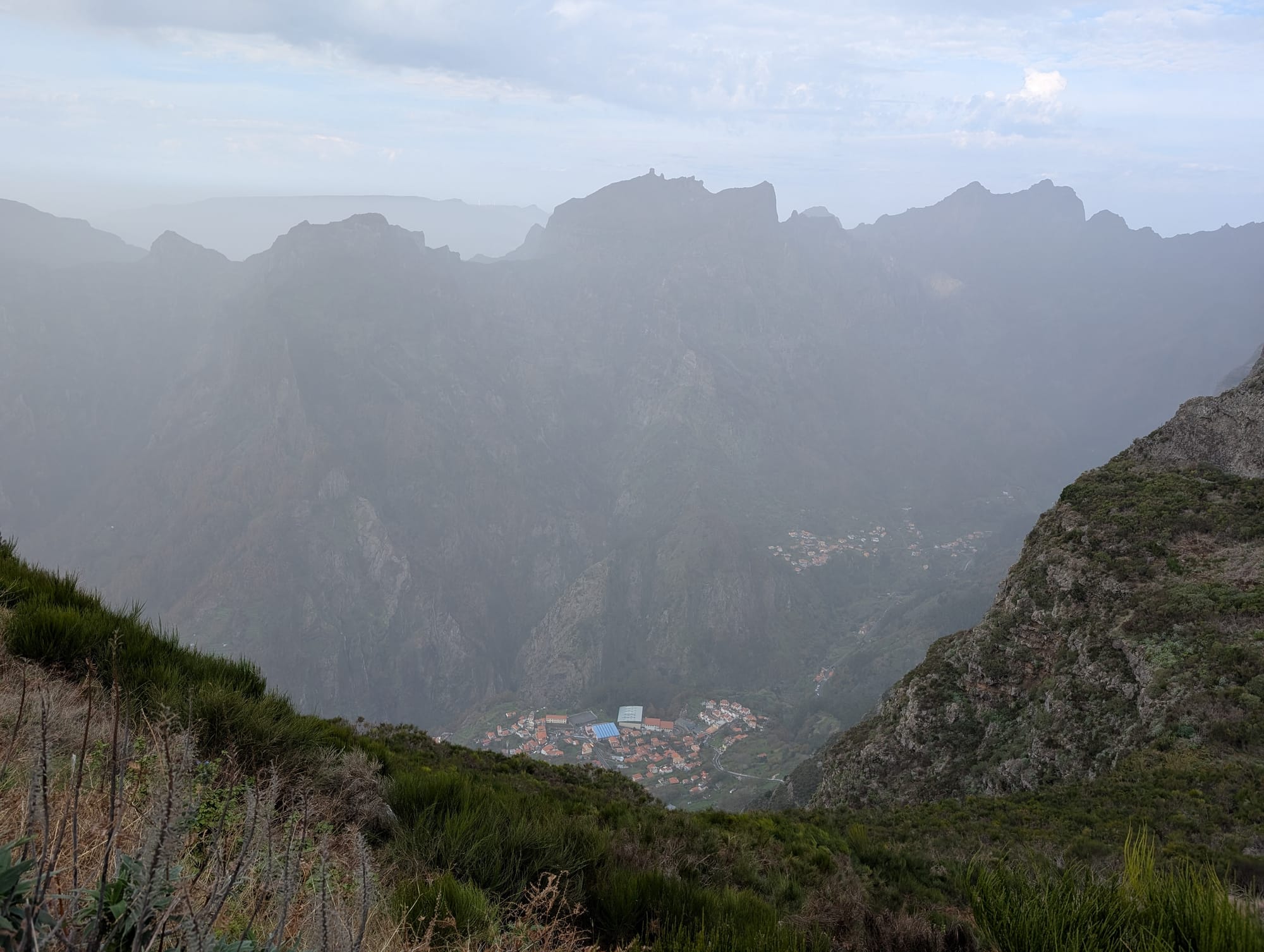 Nach etwa 3 Kilometern und 500 Höhenmetern befand sich neben der Straße der Aussichtspunkt "Miradouros do Paredão". Hier hielt ich kurz inne und genoss die Aussicht zurück ins Tal nach "Curral das Freiras".