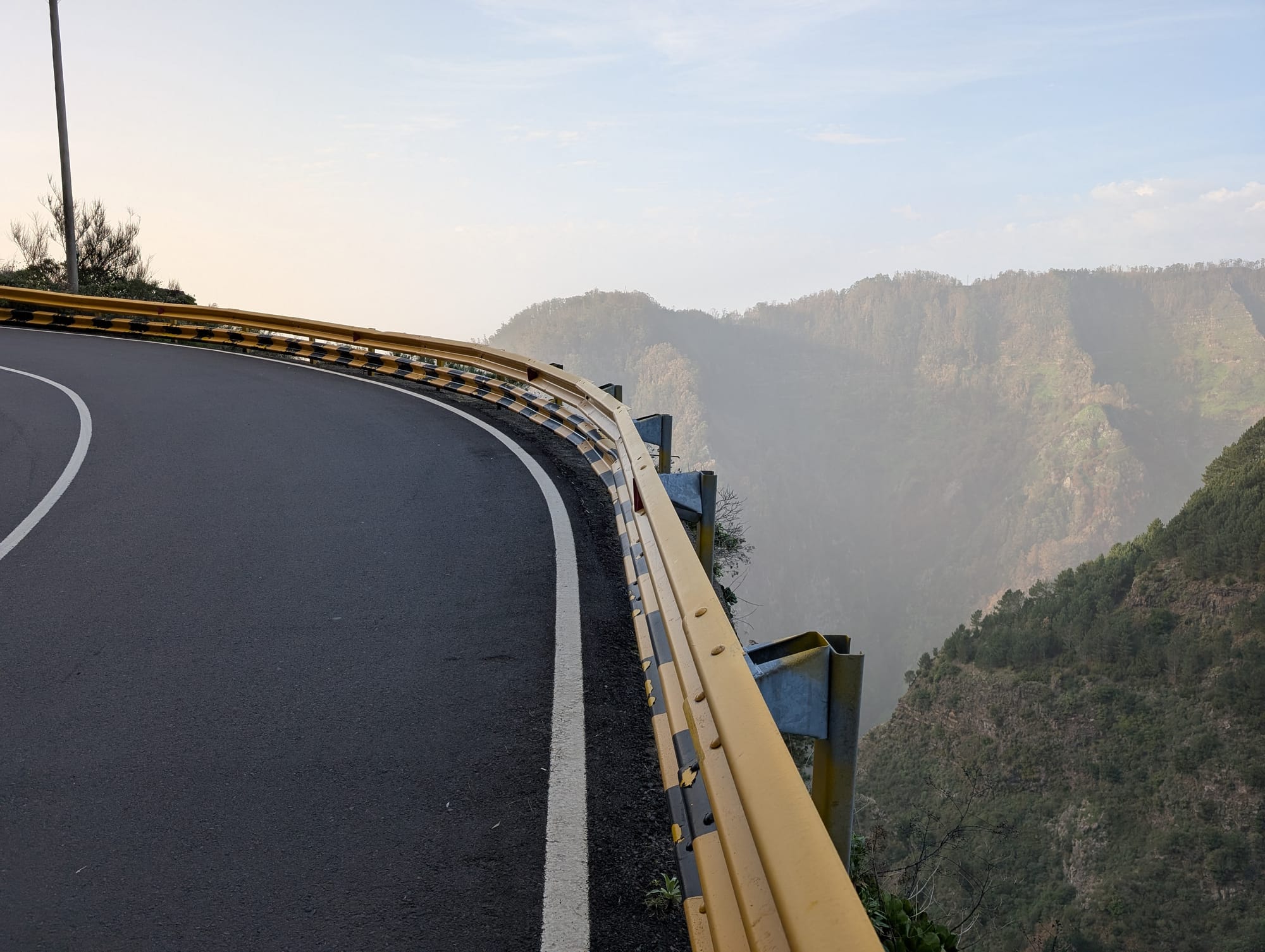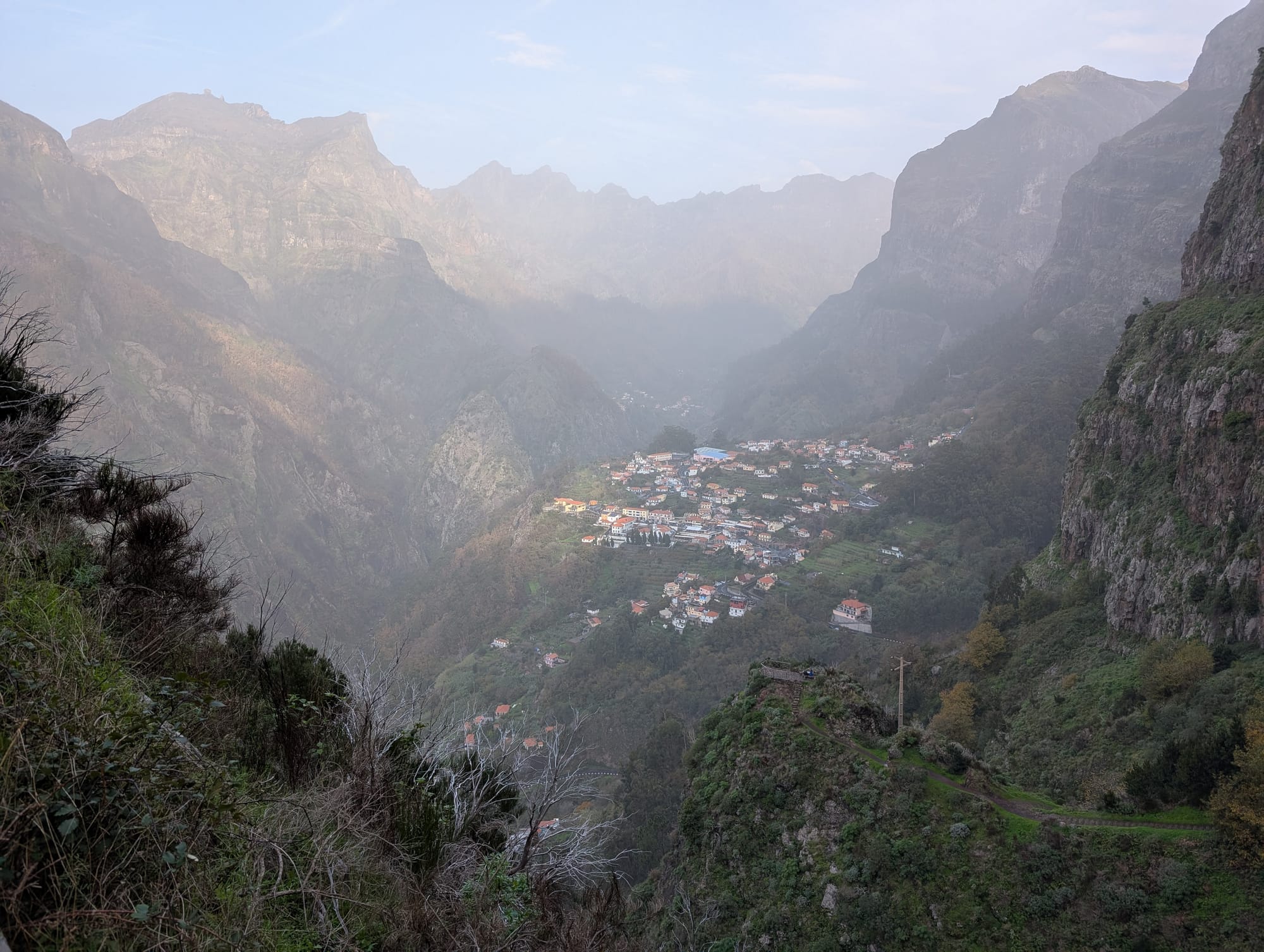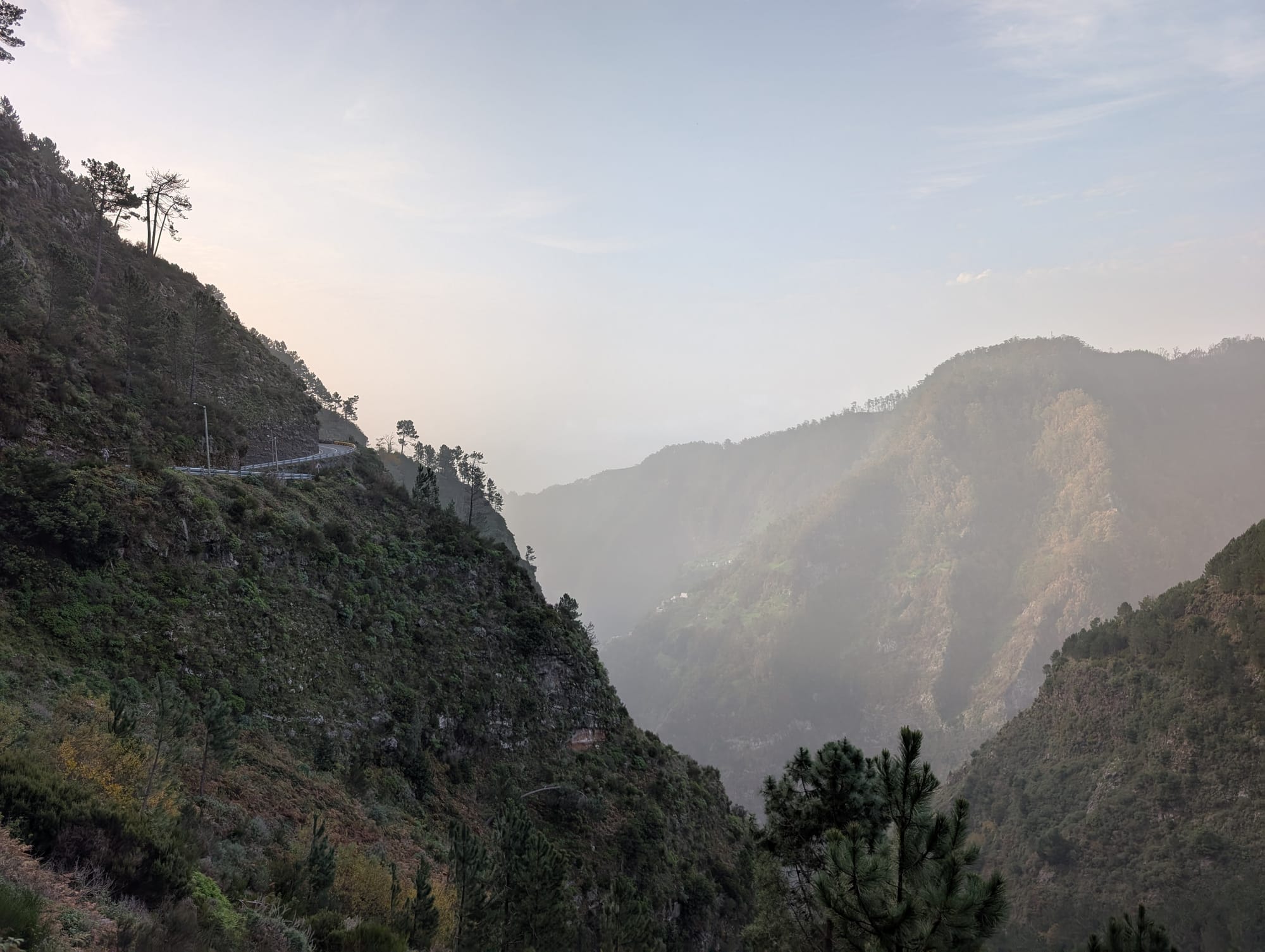 Die ersten Kilometer führten über die kleine Straße, welche von hinten zur Eira do Serrado führt. Das Tal unterhalb der Straße war noch in mystischen Morgendunst gehüllt.
