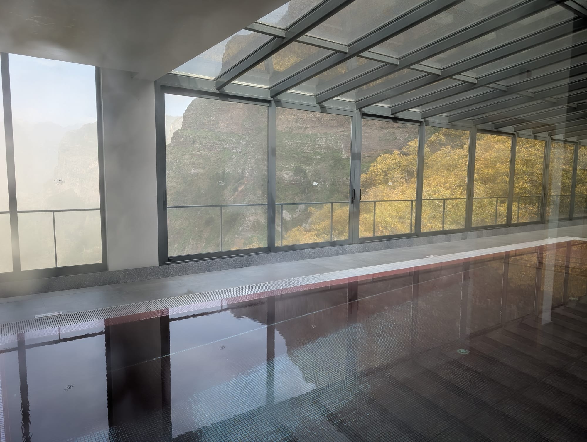 Ich erkundete ein wenig das fast leere Hotel. Im Spa-Bereich war niemand und ich konnte in Ruhe die Aussicht durch die großen Panoramafenster genießen.