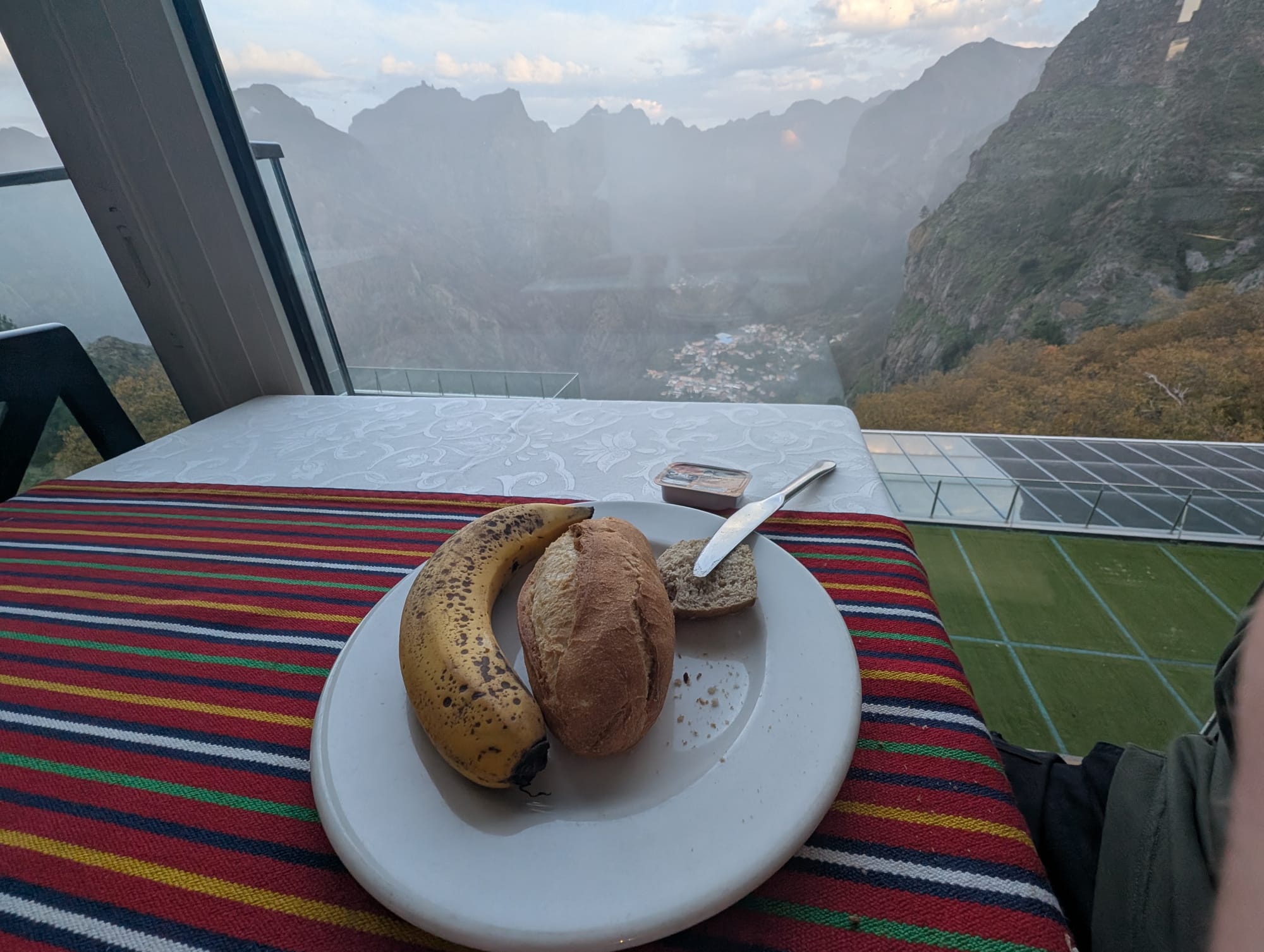 Das Frühstück im Hotel war, was die veganen Optionen anging, eher mager. Dafür gab es aber eine tolle Aussicht in das Tal.