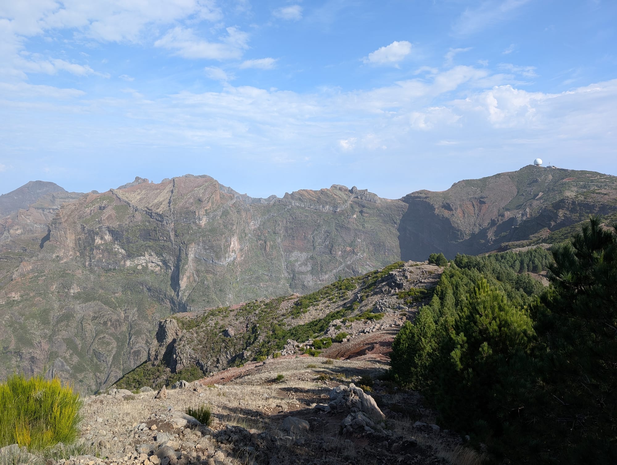 Nach einem schönen, aber auch anstrengenden Aufstieg erreichte ich schließlich den letzten Gipfel vor den Pico Areiro. Hier sah man zum ersten Mal die weiße Kugel der markanten Radarstation auf dem Gipfel.