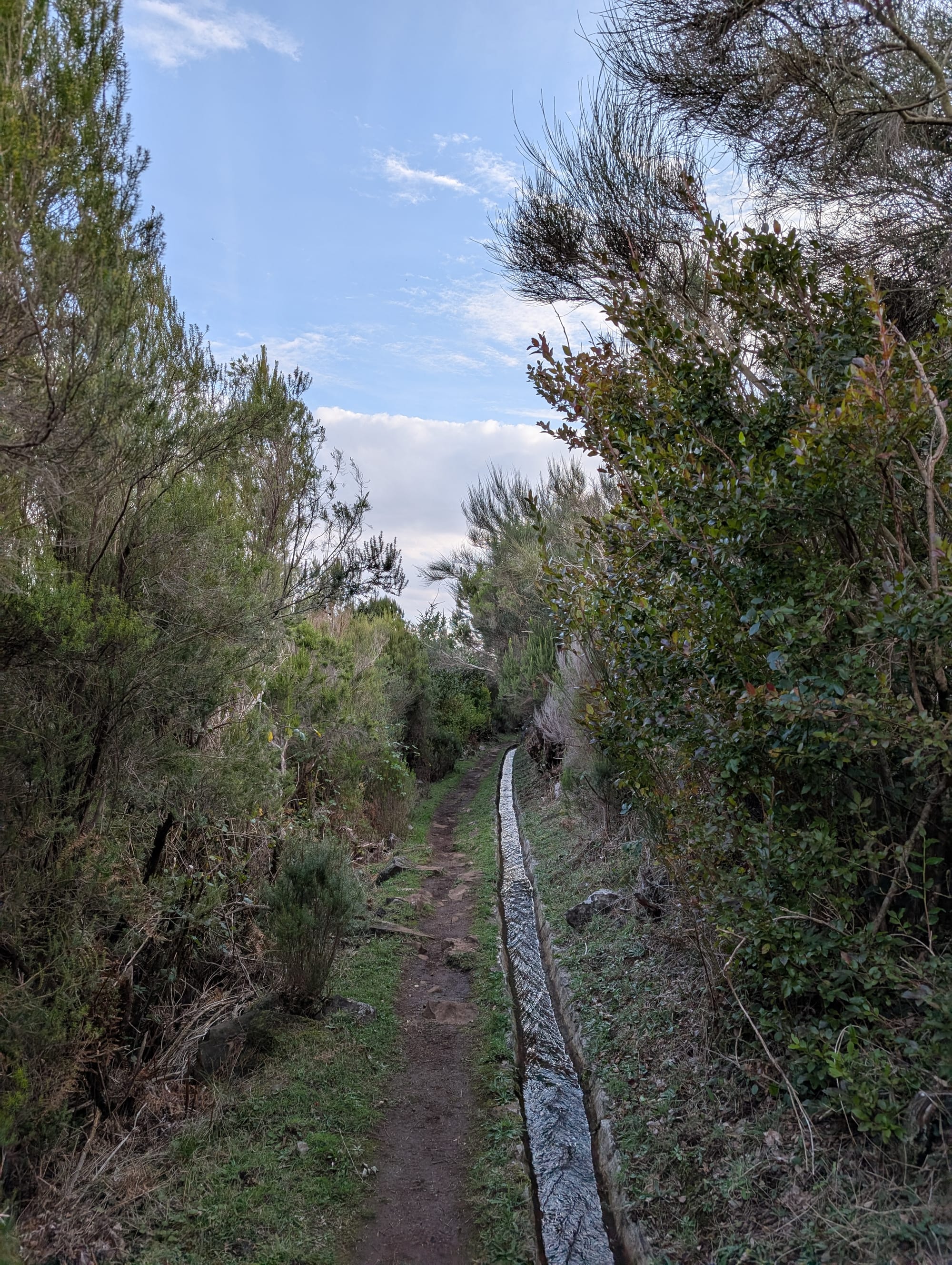 Gegen 9 Uhr brach ich auf und folgte einem kleinen Trail den Berg hinunter. Dieser führte durch einen dichten, mystischen Wald. Nach etwa 1,5 Kilometern traf ich auf die Levada do Furado. Dieser folge ich lange Zeit über einen schmalen Pfad durch den Wald. Während der Zeit an der Levada begegneten mir nur sehr wenige Wanderer.