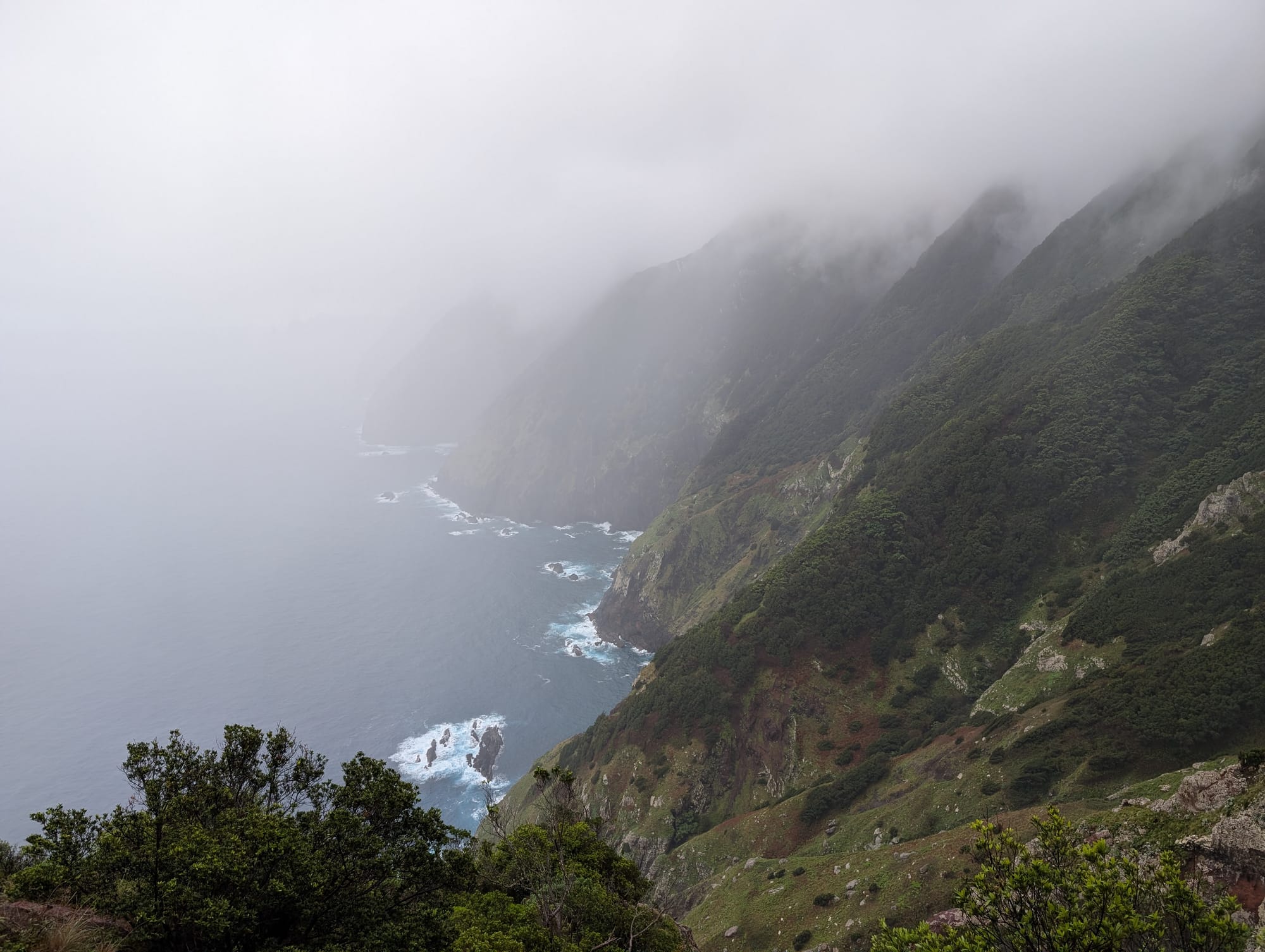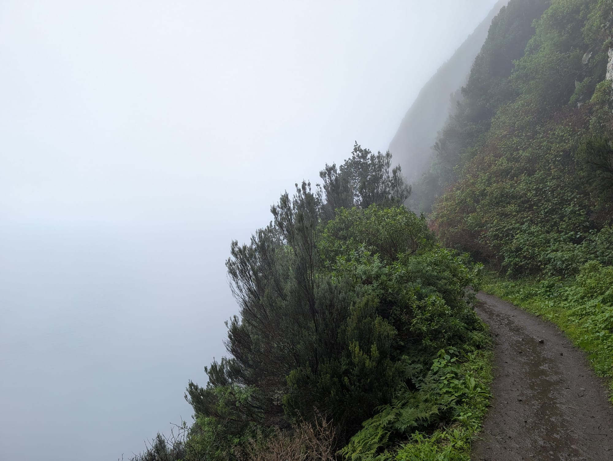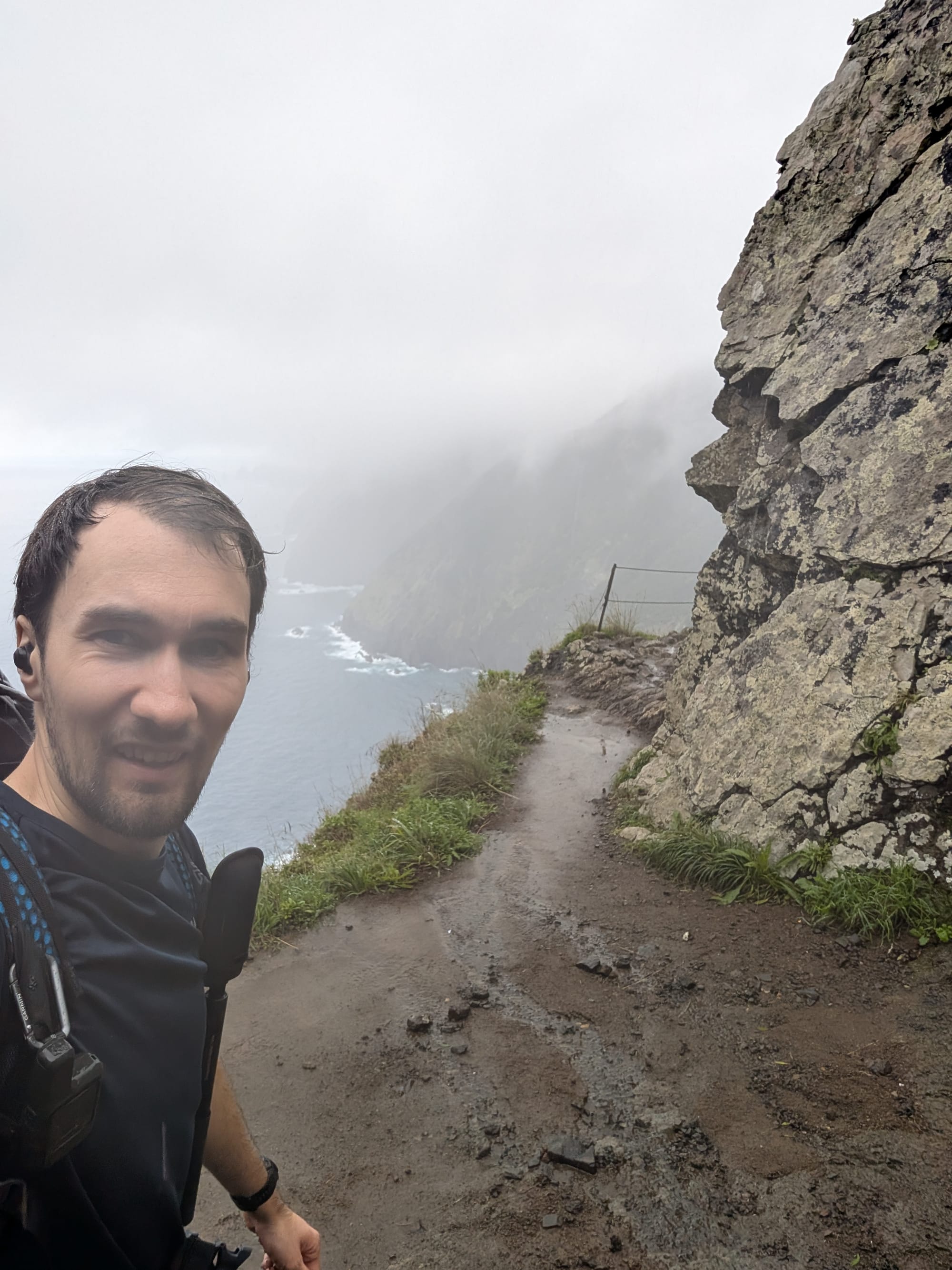 Leider wurde die Sicht durch den Nebel und die Wolken zunehmend eingeschränkt. Als ich schließlich den kleinen Pfad entlang der Klippen erreichte, konnte man nur noch wenig vom eigentlich spektakulären Ausblick sehen.