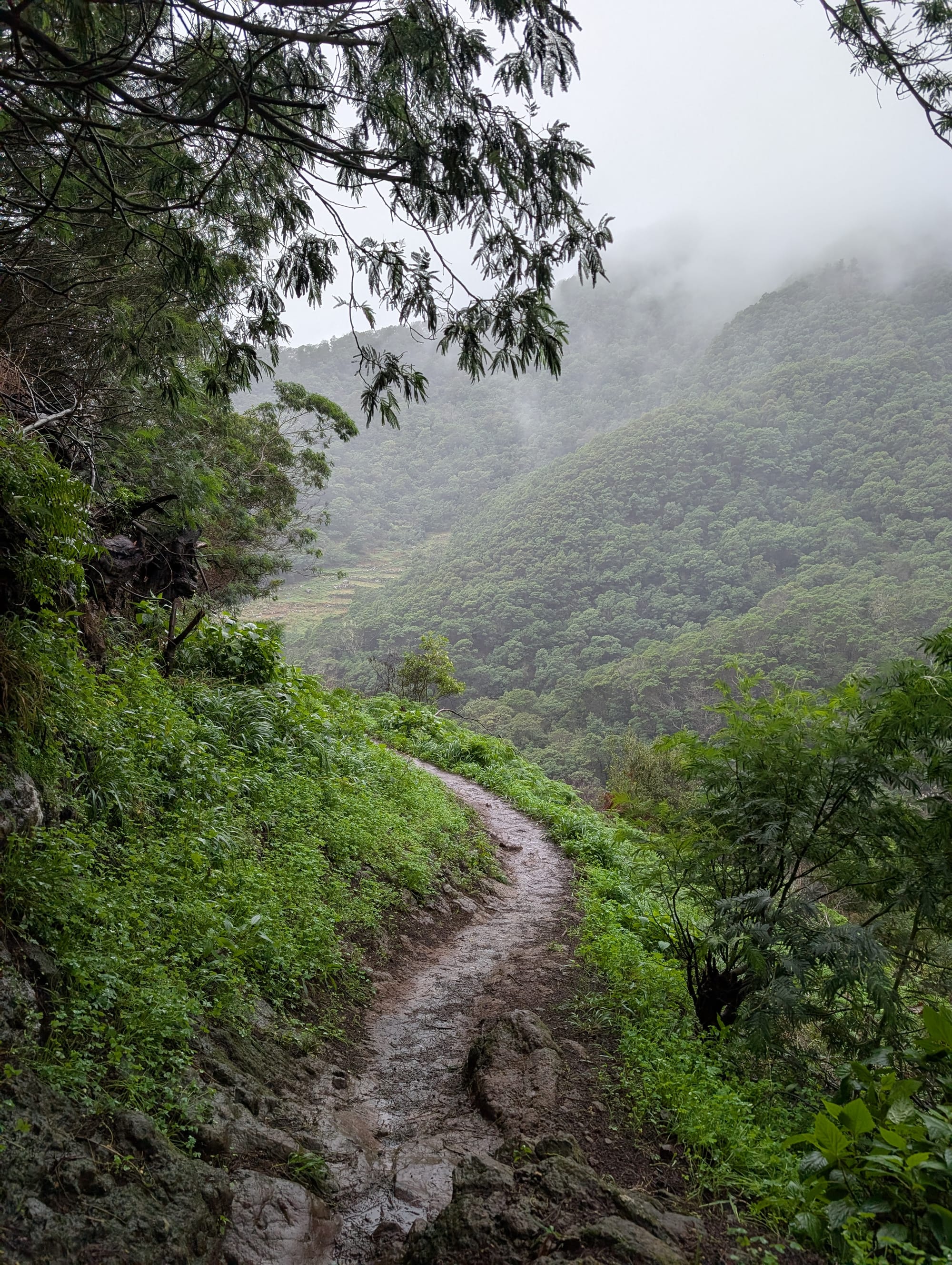 Zwischendurch trat ich mit dem Fuß in eine Levada. Irgendwann hat die Nässe und der Regen dann nicht mehr gestört, weil sowieso alles nass war.